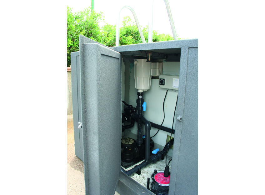 Piscina fabricada con una estructura metálica con acabado EPOXI, paneles sándwich de 10 cm de espesor, de aluminio y aislante térmico de poliuretano comprimido de máxima densidad. Este aislamiento representa un gran ahorro eléctrico en caso de climatizar la piscina, debido a su gran rendimiento aislante.